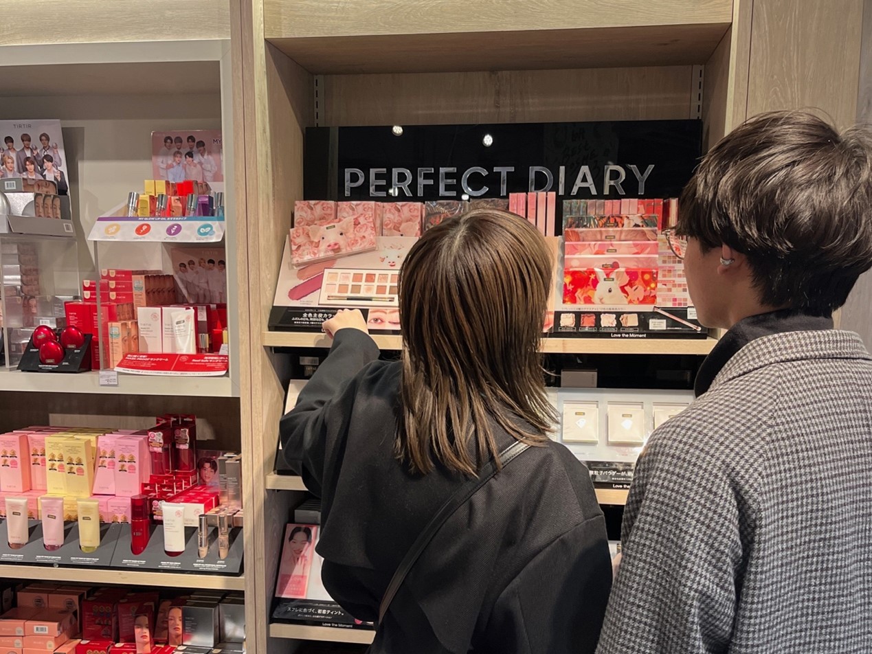 渋谷LOFTでのPerfect Diary商品棚前の潜在的な顧客