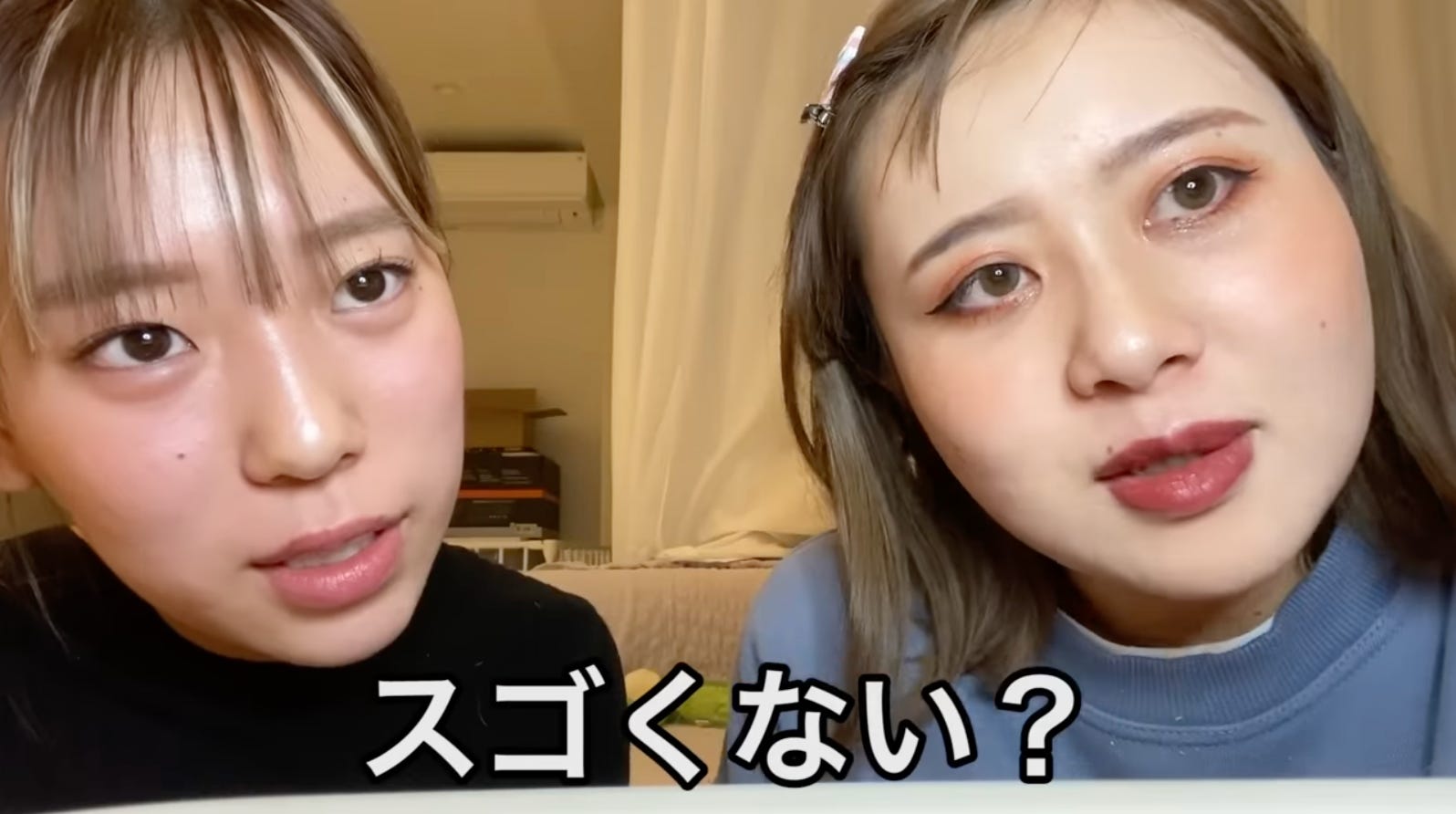 人気の美容系YouTuber、@emirin(右)による「中国メイク」チュートリアルのスクリーンショット。